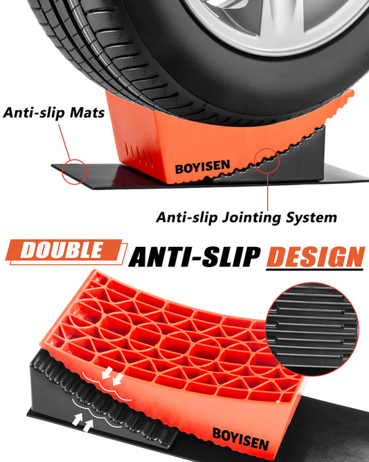 BOYISEN Camper Levelers 2 Pack - RV Leveling Blocks Ramp Kit Support Dual Axles,Up to 35,000lbs,RV Levelers with 2 Levelers,2 Chocks,2 Anti-Slip Mats and Carrying Bag Faster & Easier Leveling (Black)