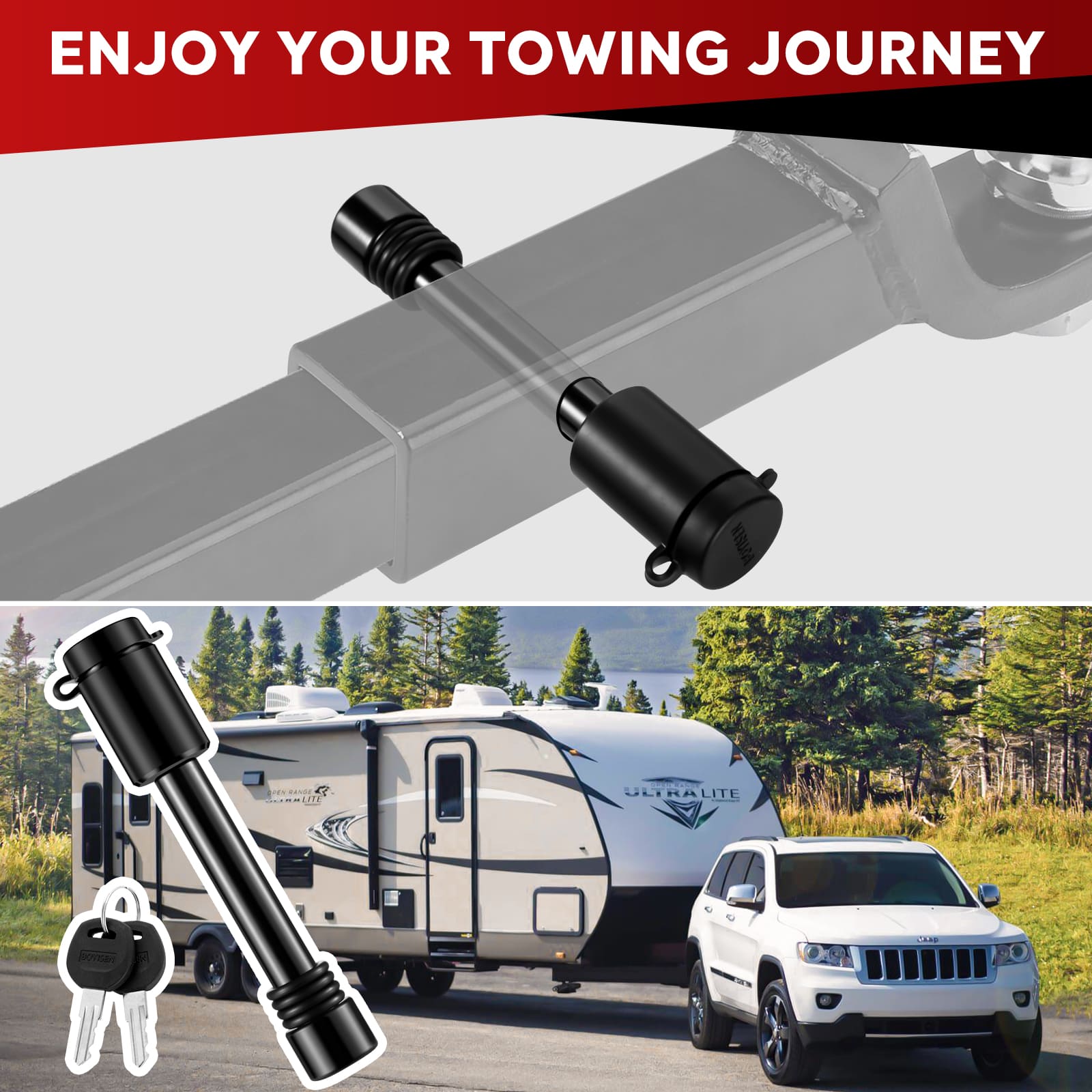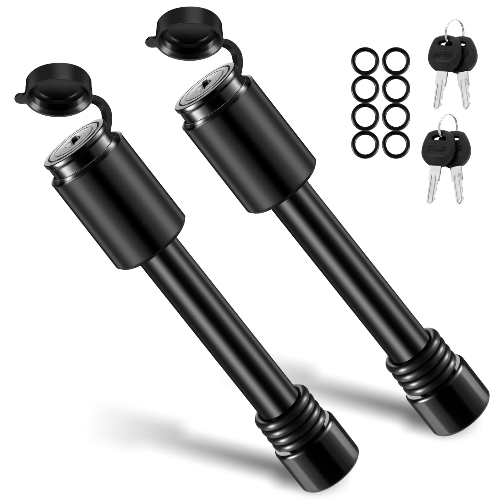 - HIGH QUALITY: Locking hitch pin is made of high-strength steel with strong lock for detering theft; black powder paint coating prevents corrosion. The lock head is wrapped with protective rubber for tighter lock and less rattling noise