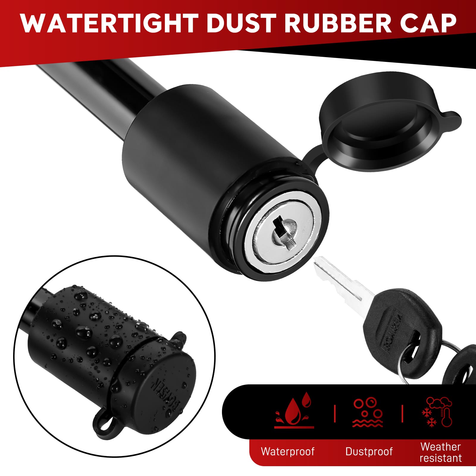 - WEATHER RESISTANT: The waterproof cap made of high quality rubber keeps the keyhole away from rust, water and dust and preventing corrosion inside the receiver lock