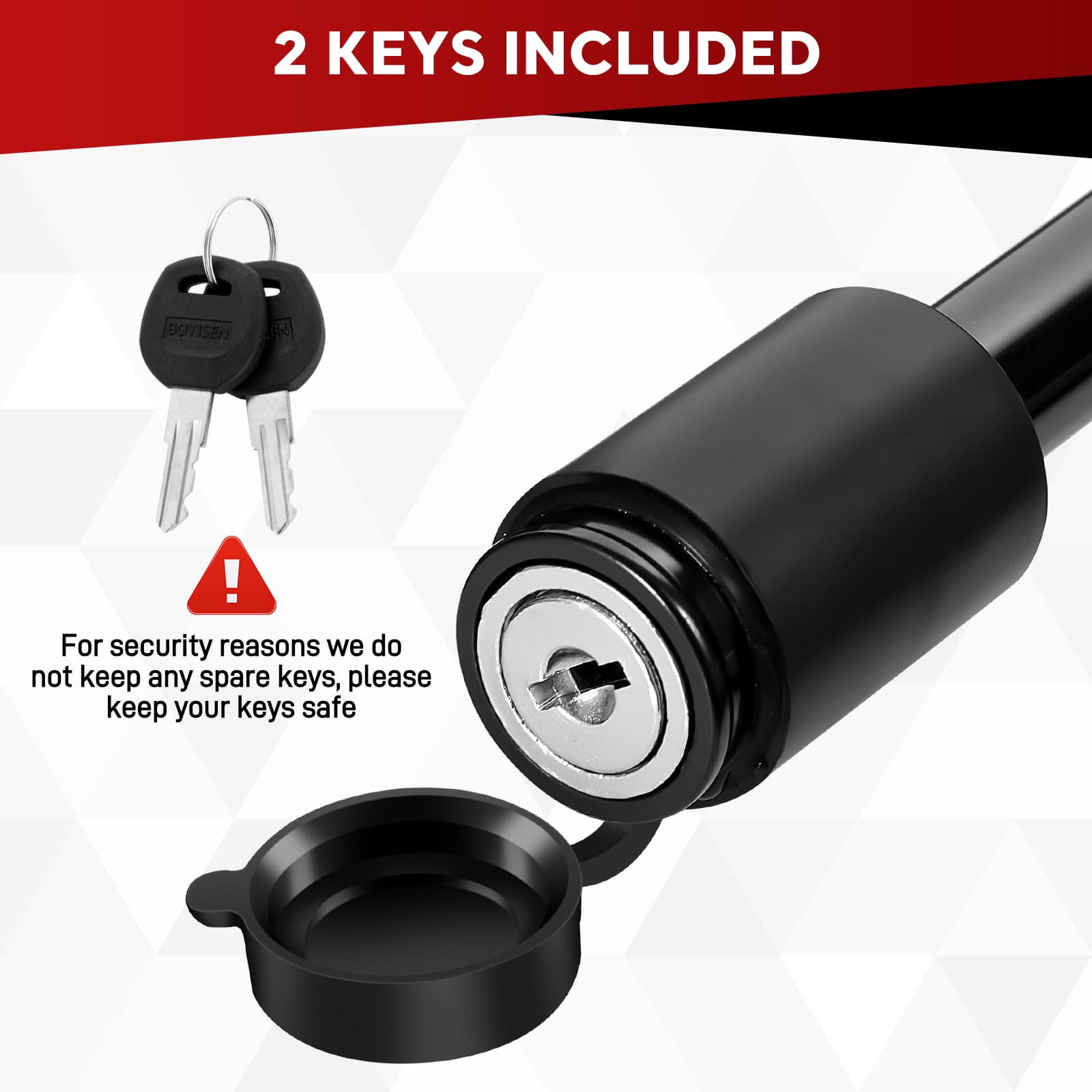 - 2 KEYS INCLUDED: Our hitch lock pin come with two keys, you can keep the spare key for emergencies. Also for security reasons we do not keep any spare keys, please keep your keys safe