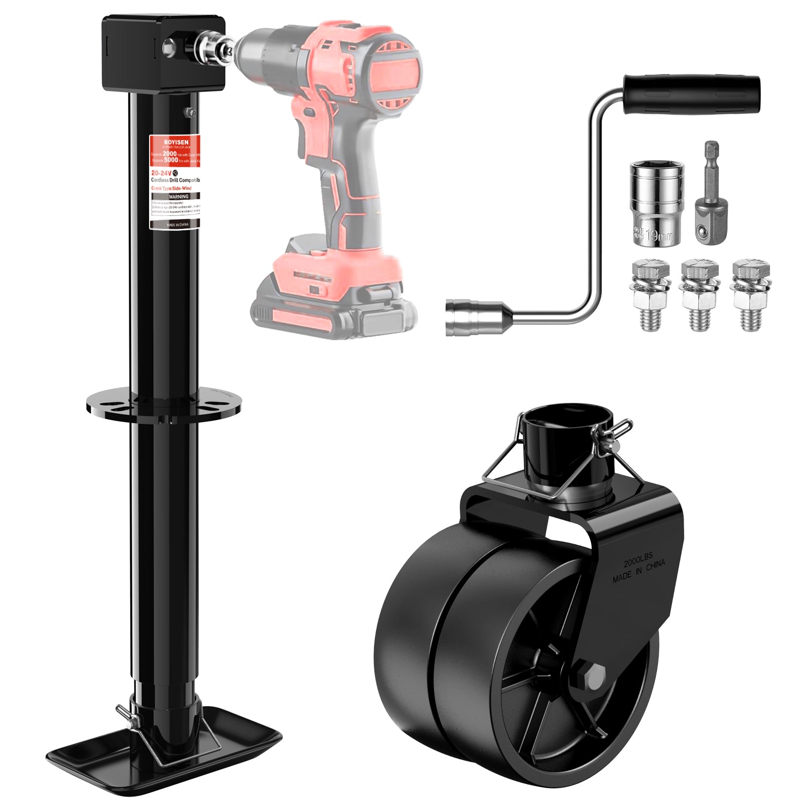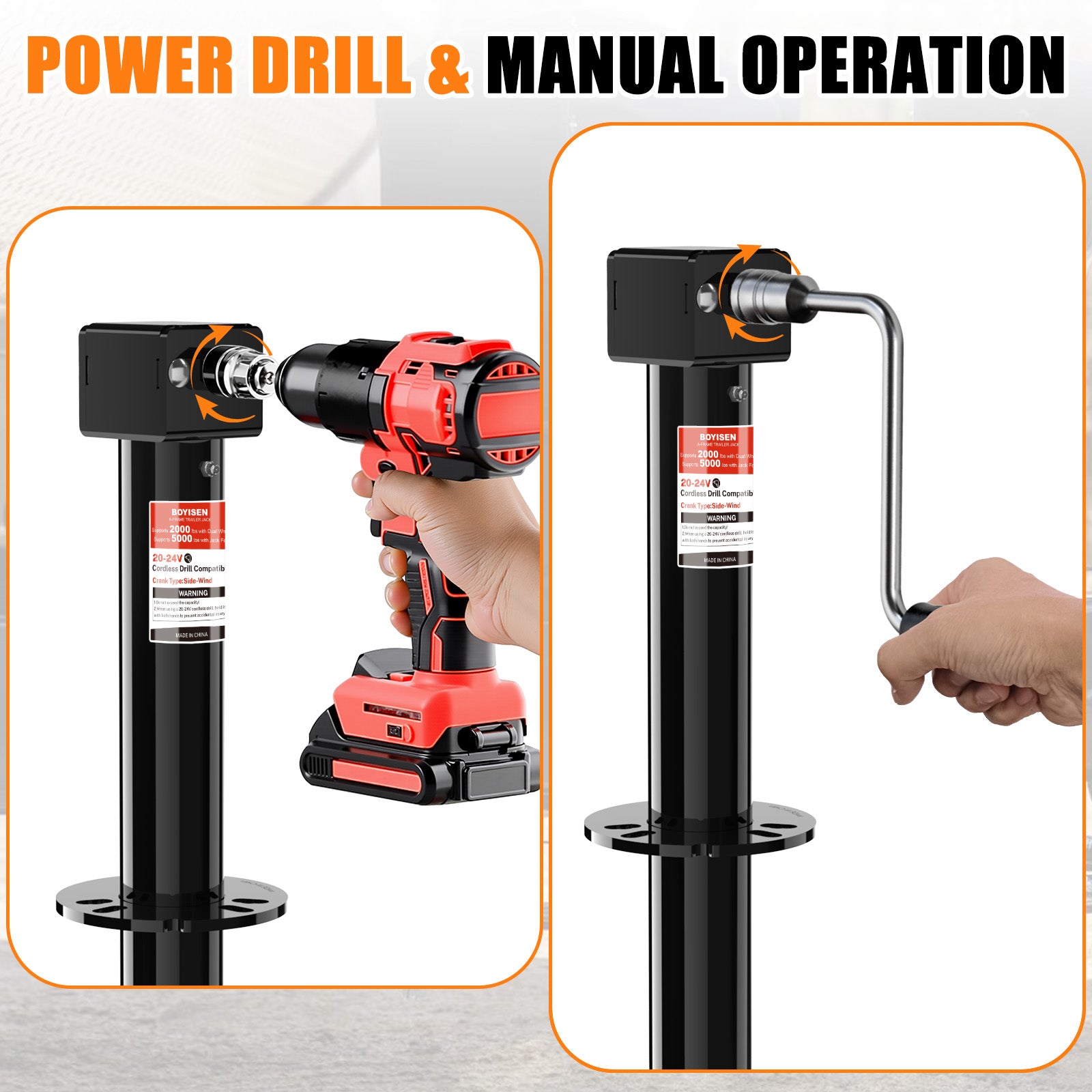 - EFFORTLESS DRILL-COMPATIBLE OPERATION: Compatible with 20-24V cordless drills, allowing for rapid and hands-free height adjustment, saving significant time and effort on any terrain. Or can be manually operated with an extended handle for stable lifting